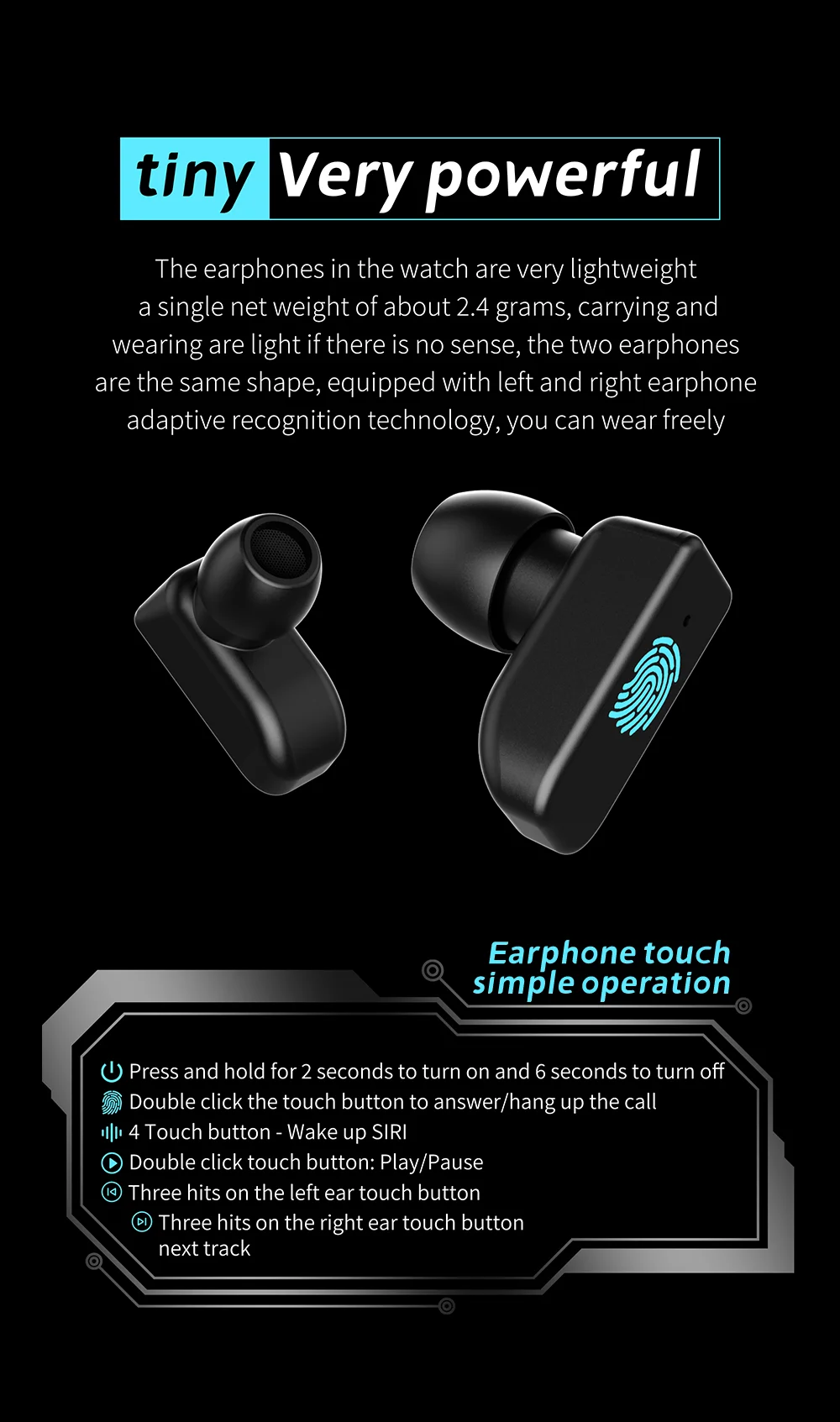 | 🔋 Battery (Watch) | 280mAh polymer, supports 150 mins full music, controls phone music |